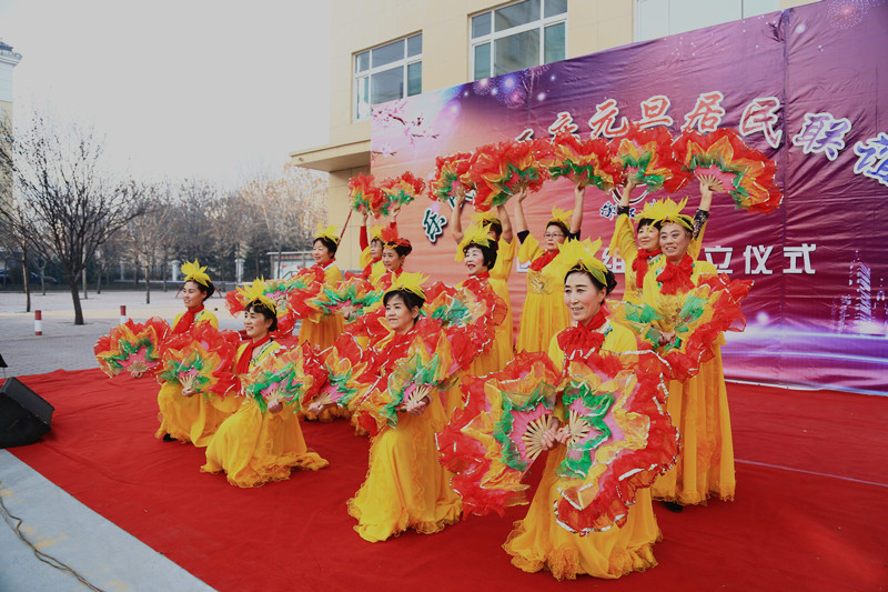 广饶县社区大妈穿着节日的盛装,跳起欢乐的舞蹈,喜迎2016年元旦