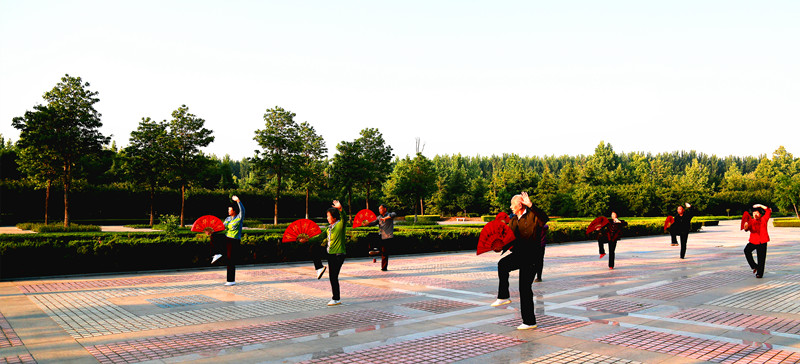 广饶县孙武湖畔居民在晨练