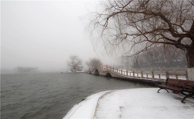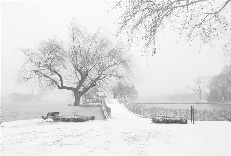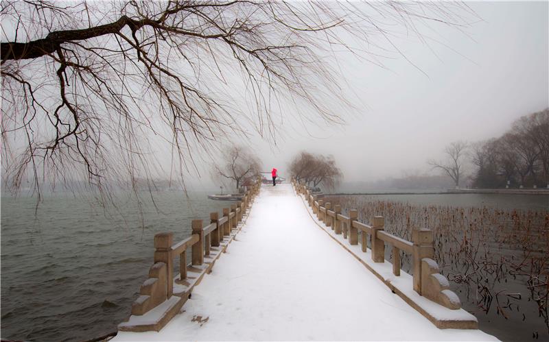 摄于严冬大明湖畔,北风呼叫,白雪皑皑,赏雪踏雪。