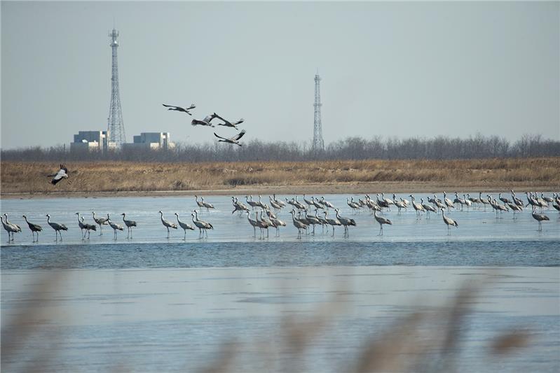 黄河故道鹤影