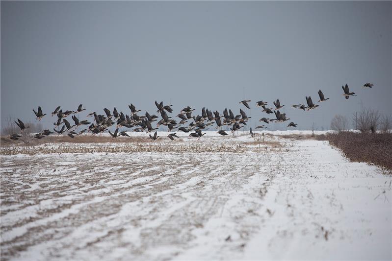 黄河口风雪大雁