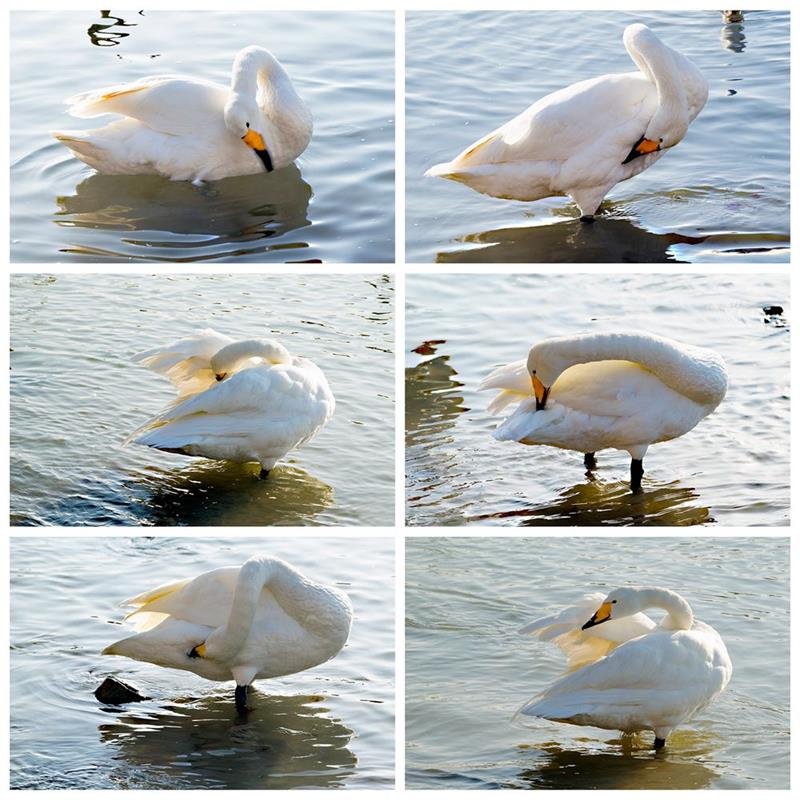 大天鹅很爱美,瞧,她正在闲暇之余以各种优美的姿势梳理.拍摄于威海.