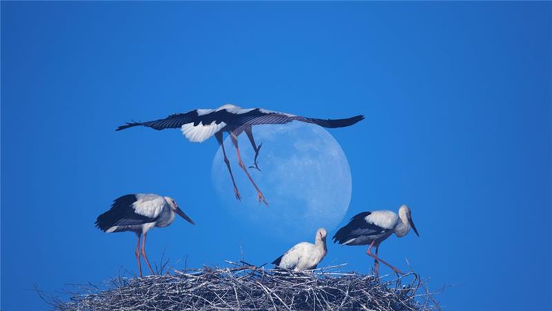 白鹳起舞,皓月当空多么美丽的画卷。