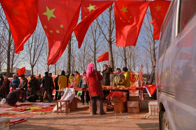 年前胶东大集上的一幕,因为靠近海边的渔民喜欢过春节买面红旗,挂在船上或家里的旗杆上,所以这时候的年集味道特别,红红火火很是温馨。