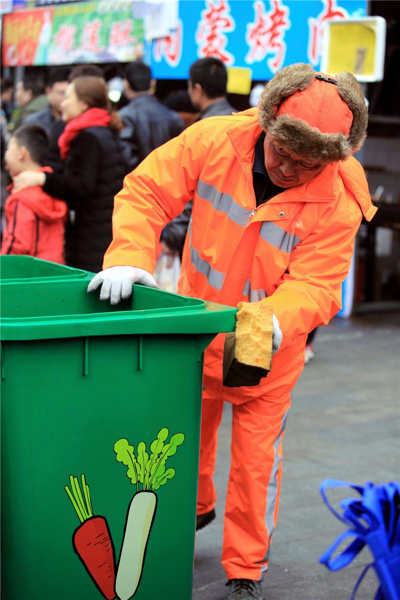 青岛2016年正月萝卜,元宵,糖球会上的环卫工人。