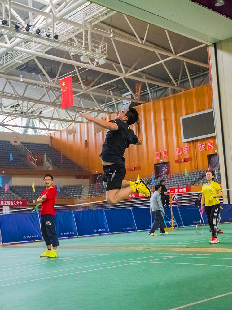 练羽毛球的小子