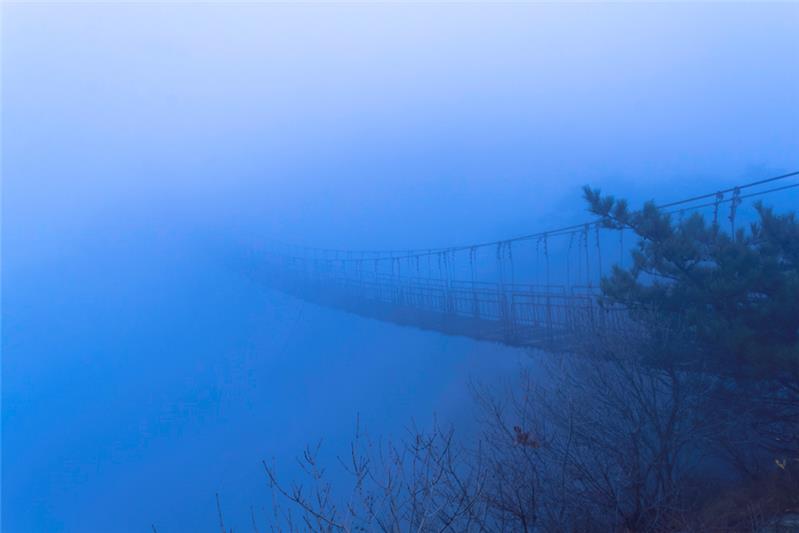 拍摄于蒙山。我站在1.5米的护栏最顶端,上面只能容纳双脚,面临深渊,拍下了这幅照片。有付出,才会有回报。