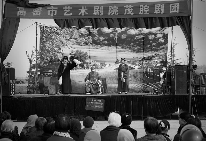 在诺贝尔文学奖获得者莫言的家乡--山东省高密市,有一个地方戏曲剧种,它以曲调质朴自然,唱腔委婉柔怨,生活气息浓郁,通俗易懂,委婉动听,有"一声直入青云去,多少悲欢起此时"而闻名,这就是被誉为"胶东之花"的“高密茂腔”,它是在汉族民间说唱形式"肘鼓子"的基础上,吸收花鼓秧歌的表演程式,逐步发展而来的。2006年5月,“高密茂腔”被国务院公布为第一批国家级非物质文化遗产名录,使“高密茂腔”确立了在全国文化艺术领域中的地位,也提高了它的知名度。 前些年,作为茂腔重要发源地的高密市,专业的茂腔演员只有30余人,社会上也没有教娃娃学茂腔的兴趣班。为了使这个国家级非遗项目传承下去,2008年7月,高密市委、市政府委托潍坊学院幼教特教师范学院培养40名10至13周岁的娃娃,并专门拨出40个事业编制,在当地和周围地区招考,当时在山东省绝无仅有的创举,引起一阵轰动。精挑细选出来的茂腔娃娃,利用五年时间系统学习文化课和基础武功、唱念、戏曲音乐伴奏等10多门专业课程,专门聘请国家级演员老师教唱腔。如今这些娃娃已经毕业并登上了演出舞台,挑起了大梁,茂腔也有了后备人才。 近几年,高密茂腔剧团以"出新人、出新戏、提高艺术生产能力"作为茂腔传承的指导思想,在艺术实践中开创"以戏带人、以人带戏、以老带新"的工作思路,使剧目的演出水平日渐提高。老演员率先垂范,耐心讲解演唱技巧和动作要领,新演员虚心学习,勤学苦练;每次演出前演员提前二个小时就开始认真的化妆;最多的时候还是演员自己化妆;有时演员出演的角色一个人难以完成化妆任务,伙伴们就相互帮助化妆;在下乡演出时,条件艰苦,他们就把农家作为化妆间和休息室;遇到条件好的村委会的办公室就成了他们的化妆室;有的时候为了赶时间,演员没有吃早饭,到演出地点后买些副食品充饥;有时到了农村演出,乡亲看到城里的演员来了,好奇的围着演员问这问那;当演员们看到野风吹拂下的舞台前,吸引许多老少爷们前来观看演出时,也很是开心。我通过三年的跟踪拍摄看到,目前较好的解决了人们担心的茂腔可能出现青黄不接、后继乏人的问题,“高密茂腔"后继有人了! 红高粱是高密大地的根,茂腔就是高密大地的魂。那一曲唱腔,诉说了往事的凄凉沧桑,道出了人间的悲欢离合,点燃了心中的热切梦想!那发自内心的低吟浅唱,荡气回肠、余音袅袅,久久回响在高密大地上……