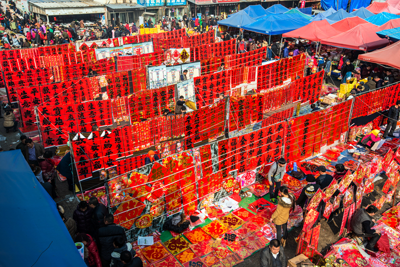 百年李村大集就要迁址了,留下这红红火火迎新年的春联大集别有一番意思。