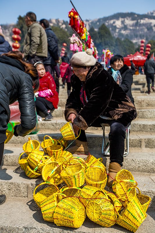 邹城峄山,买藤篮的老人。
