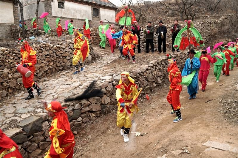 拍于2016年2月19日,威海海阳龙头村。海阳大秧歌是一种古老的民间舞蹈,属于山东三大秧歌之一,是全国首批非物质文化遗产,已有570年的历史。它以粗犷奔放、热烈欢快,质朴坦率,风趣幽默的表演风格著称于世。