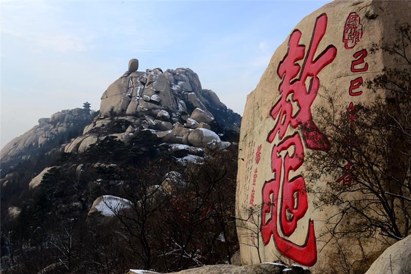 “鳌”字刻石据说是当今世界上最大的汉字刻石之一,高15米,宽8米。我国著名的书法家杨萱庭先生72岁时来峄山游览,被峄山的风光所陶醉,题写了这个“鳌”以作永久的纪念。