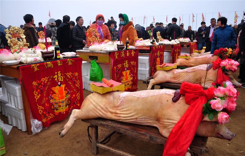 3月15日,即墨市田横旅游度假区黄龙庄村举行祭海仪式,渔民们用最原始的方式感恩大海,祈求丰收。