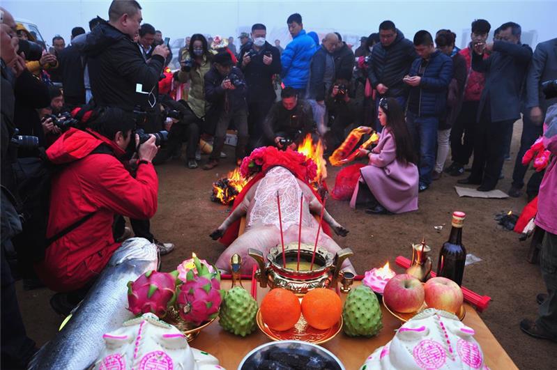 3月15日,即墨市田横旅游度假区黄龙庄村举行祭海仪式,渔民们用最原始的方式感恩大海,祈求丰收。