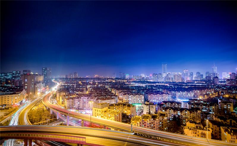 青岛胶宁高架桥,广电大厦段夜景