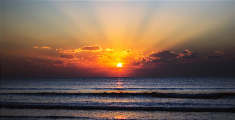 新年的第一轮日出,魅力耶稣光带来一年的好运。摄于青岛石老人。