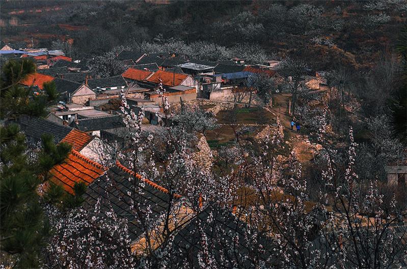 这是烟台市牟平区的杏花村,漫山遍野的杏花开了,吸引大量的游客前来游玩